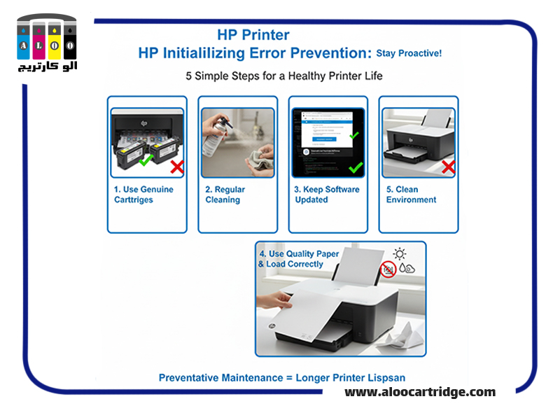 هرگاه این فرآیند در یک مرحله متوقف شده و پرینتر از این حالت خارج نشود، خطای initializing پرینتر HP رخ میدهد. نشانههای خطا معمولا نمایش دائمی پیام روی صفحه نمایش، چشمک زدن چراغهای هشدار و عدم پاسخگویی دستگاه به هر دستوری است. ریشه مشکل در مسائل سادهای مانند کارتریج یا دلایل پیچیدهتری مانند نقص نرمافزاری جستوجو میشود.