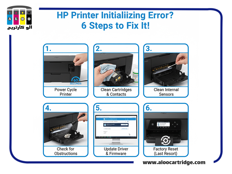 پس از آشنایی با دلایل احتمالی، نوبت به برطرف کردن خطای initializing پرینتر HP میرسد. مراحل زیر به ترتیب اهمیت هستند: