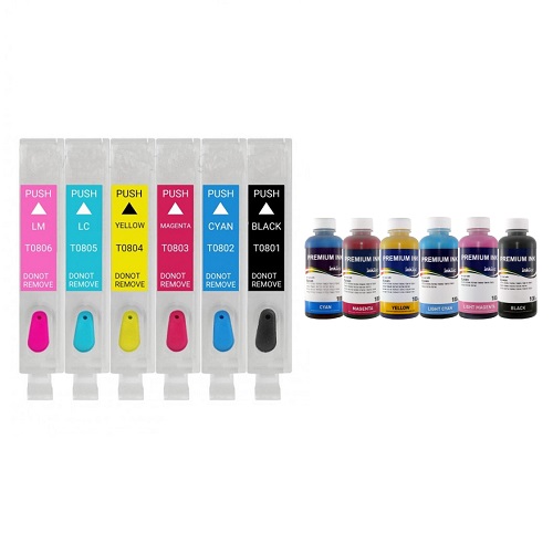در کارتریج های جوهری (قابل شارژ) جوهر به طور مستقیم به محفظه تانکر کارتریج (که در بیرون پرینتر قرار دارد) تزریق میشود، جوهر از طریق لوله های باریک به هد کارتریج قابل شارژجوهرافشان اپسون T0801-T0806 منتقل شده و بر روی کاغذ پاشیده میشود.